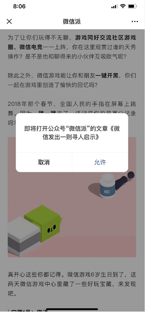 公眾號文章內圖片跳轉的調整通知