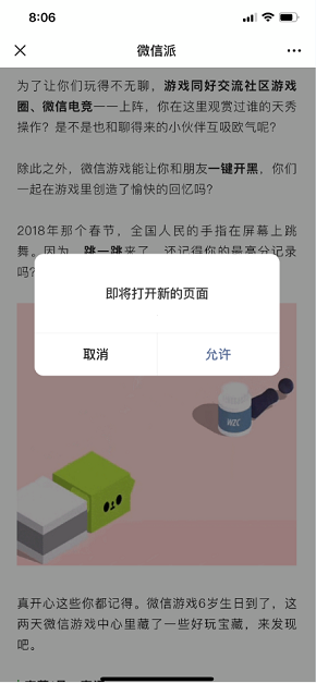 為了優化公眾號文章內圖片跳轉的用戶體驗,從2019年8月20日起,對以下圖片跳轉行為增加彈窗提示: